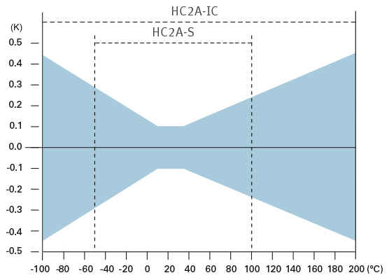 Alle Sensoren für relative Luftfeuchtigkeit erfordern eine Kompensation des Temperatureinflusses auf das Ausgangssignal der Luftfeuchtigkeit, um genaue Messungen über einen großen Temperaturbereich zu gewährleisten. Der AirChip 3000 im Rotronic Hycroclip-Fühler speichert eine Reihe von 31 Tabellen, die den Temperaturwerten im Bereich von -100 °C bis +200 ˚C entsprechen. Jede Tabelle enthält Kompensationsdaten zwischen 0 % rF und 100 % rF in Schritten von 10 % rF. In Kombination mit der hochgenauen Temperaturmessung, dem sehr geringen Stromverbrauch und der damit verbundenen geringen Eigenerwärmung sowie der fortschrittlichen Elektronik ermöglicht der Rotronic HygroClip außergewöhnlich genaue Messungen der relativen Feuchte und der Temperatur in einem breiten Temperaturbereich.